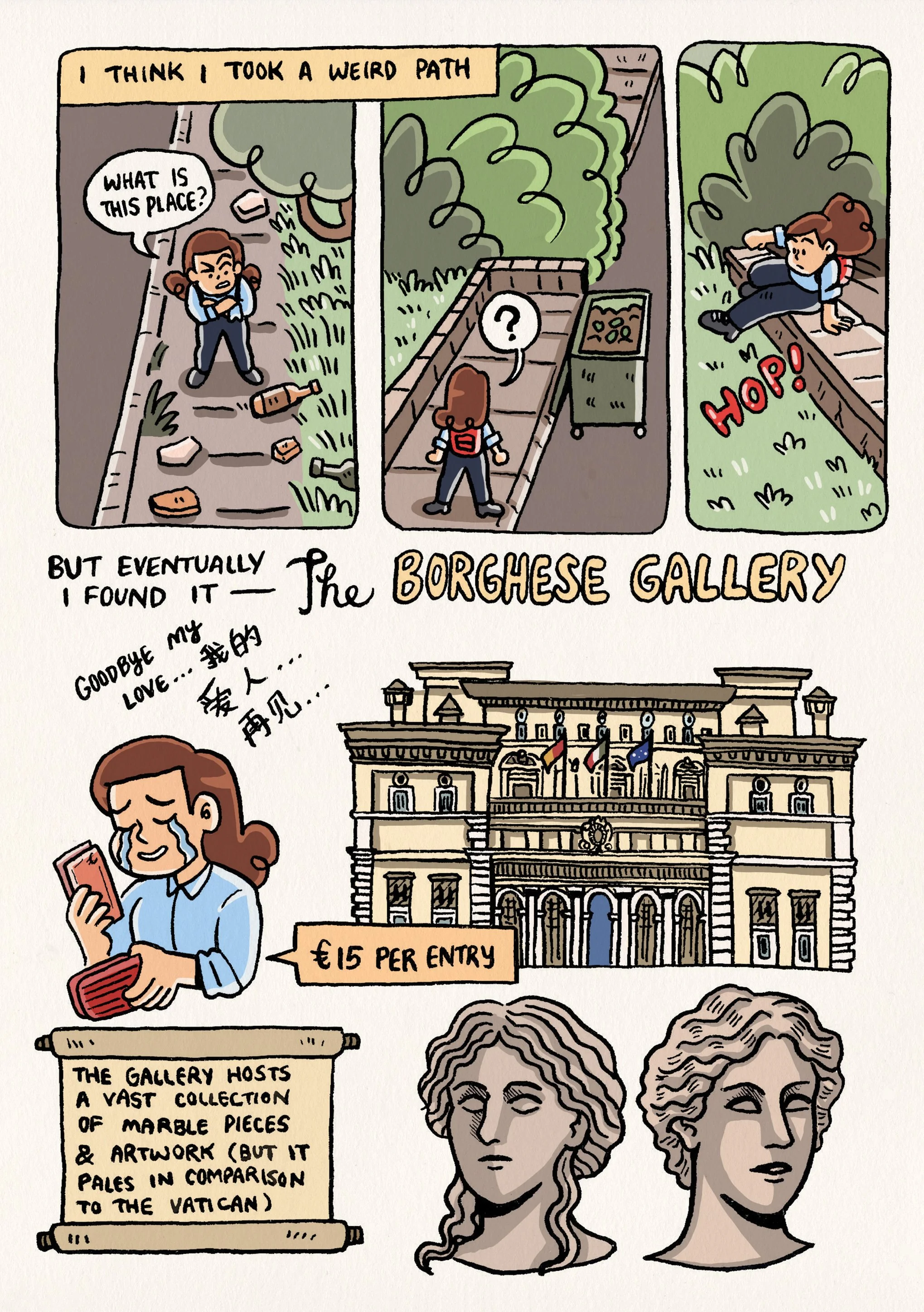 Travel journal comic based on my travels to Rome, Italy in the beginning of Fall in 2017. It documents various places visited ranging from the Roman Forum to The Vatican Museum along with its histories, food consumed and an encounter with an angry ghost.