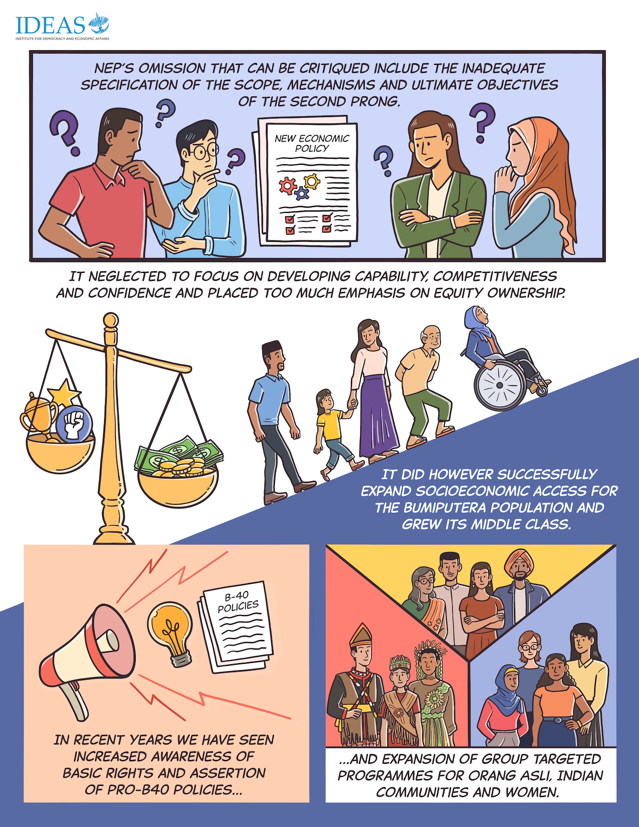 An explainer comic commissioned by IDEAS Malaysia which explains the past and future of the New Economic Policy in Malaysia based on Dr. Lee Hwok Aun’s paper. The comic was published here. Prev / Next